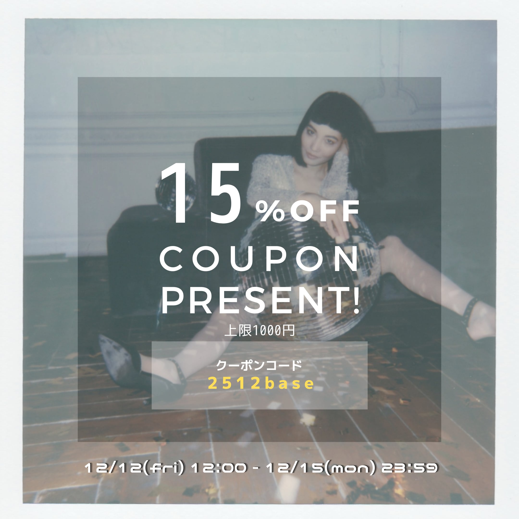----------------------------------------------------------------------- 【12/12(金)12:00~ 12/15(月) 23:59 期間限定】 15%OFF クーポン/上限1. 000円【2512base】 お得なクーポンを是非GET♪されてくださいね! ※BASE(Pay ID)アプリ発行クーポンとなります ※Web Shop、Pay IDアプリどちらからの購入でも利用できます ※クーポンは何度でも(=複数Shopで)使用できますが、1店舗につき1回限りのみ使用できます ※お買い物から最大¥1000の割引となります ※1会計につきクーポンは1つのみご利用いただけます SALE商品にもご利用いただけますので、ぜひ【SERi9】でのお買い物をおたのしみください♪ --------------------------------------------------------------------- ▼クーポン概要 利用可能期間:2025年12月12日(金)12:00〜2025年12月15日(月)23:59 ・クーポン内容:15%OFF /最大1000円OFF (送料をのぞく注文金額に適用) ⚠︎注意事項⚠︎ ・利用上限枚数を超えた場合、利用期限前に終了する可能性があります ・1会計ごと割引金額は最大で1000円までとなります ・本クーポンは、デジタルコンテンツ商品、定期便、抽選商品へのご利用はできません ・本クーポンをご利用の場合、クレジットカード決済時も注文後の決済金額の変更はできません ・一度クーポンを利用して商品を購入した場合(一部、もしくはすべての商品の)注文をキャンセルしても、再度クーポンを利用することはできません ・ほかのクーポンとの併用はできません