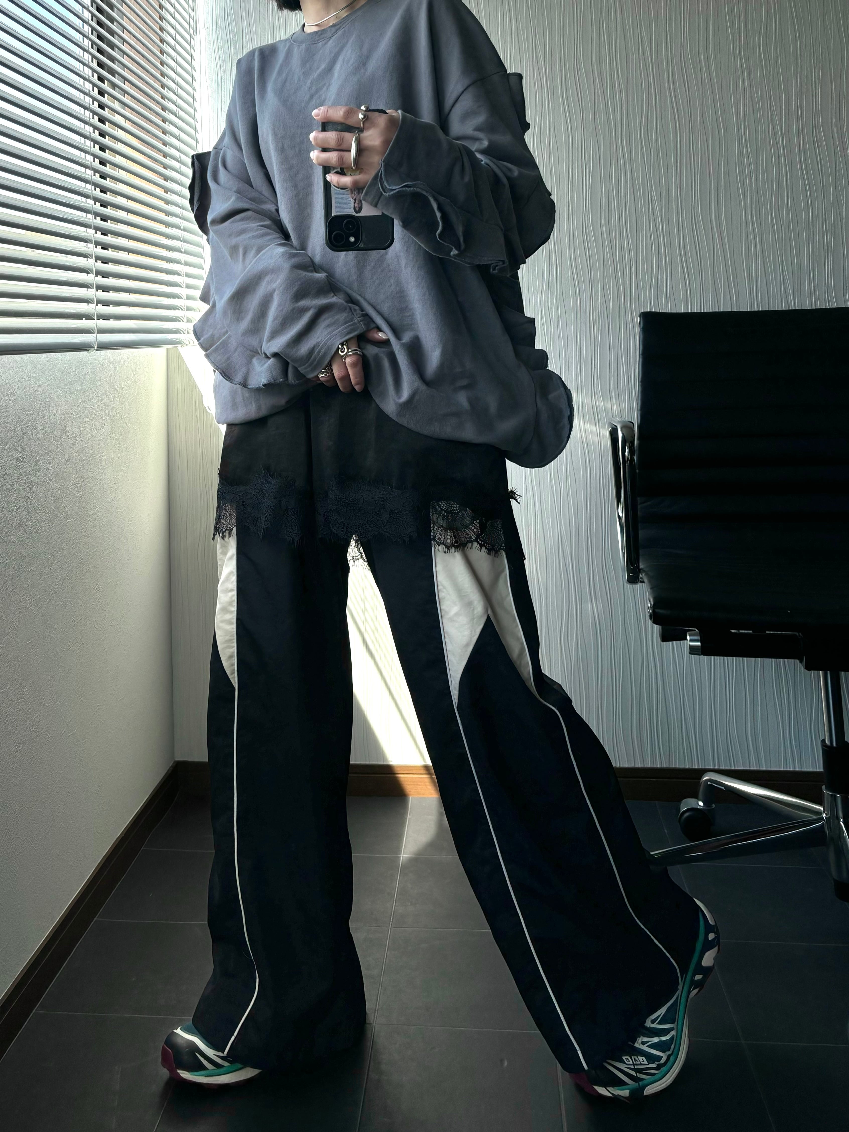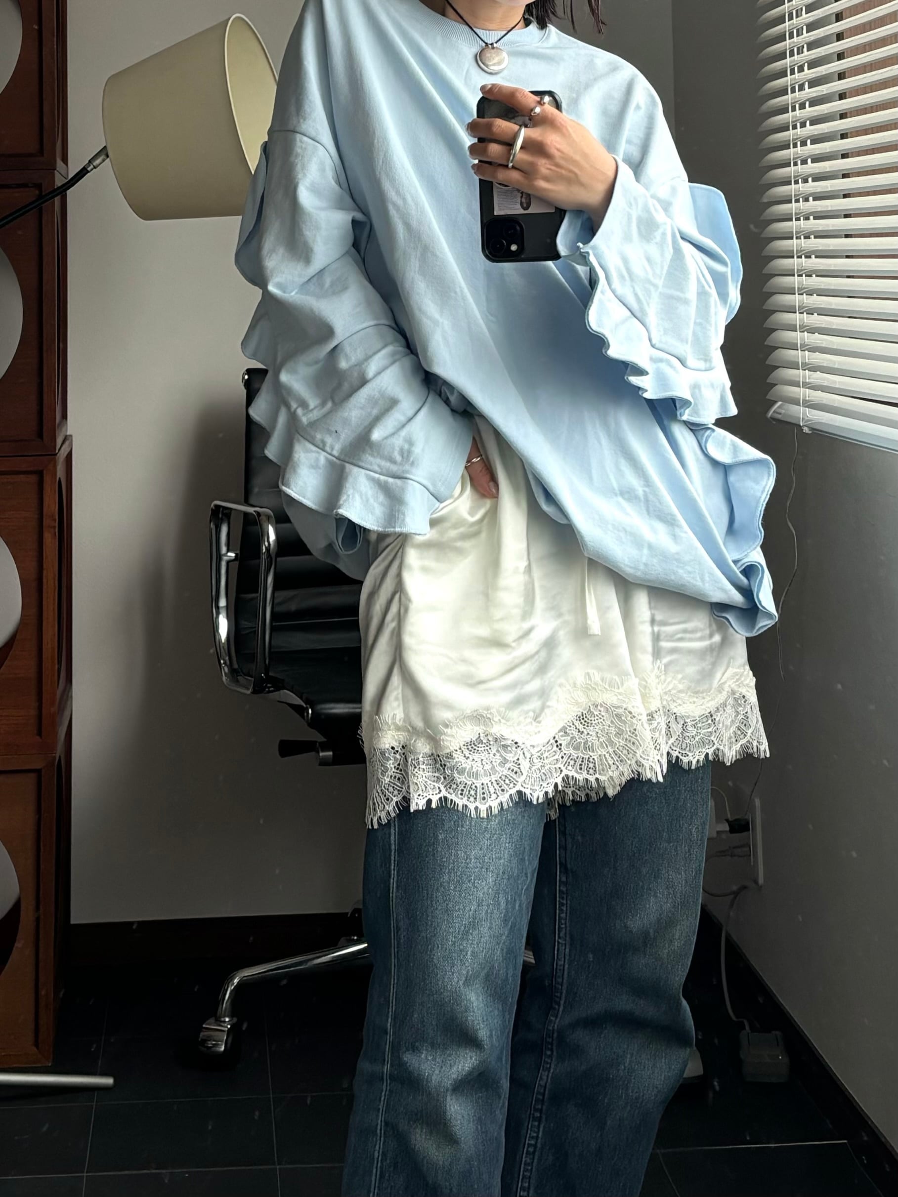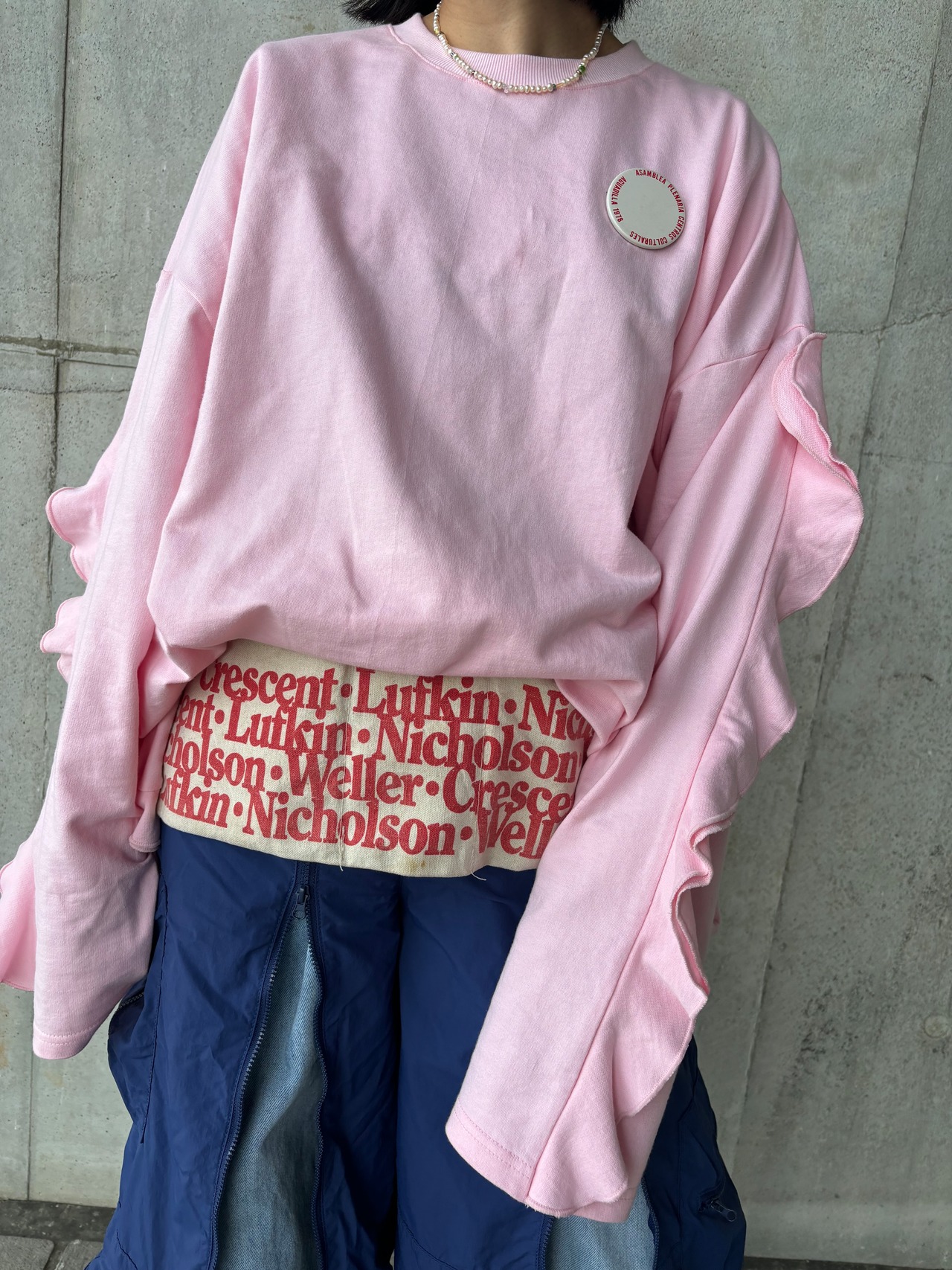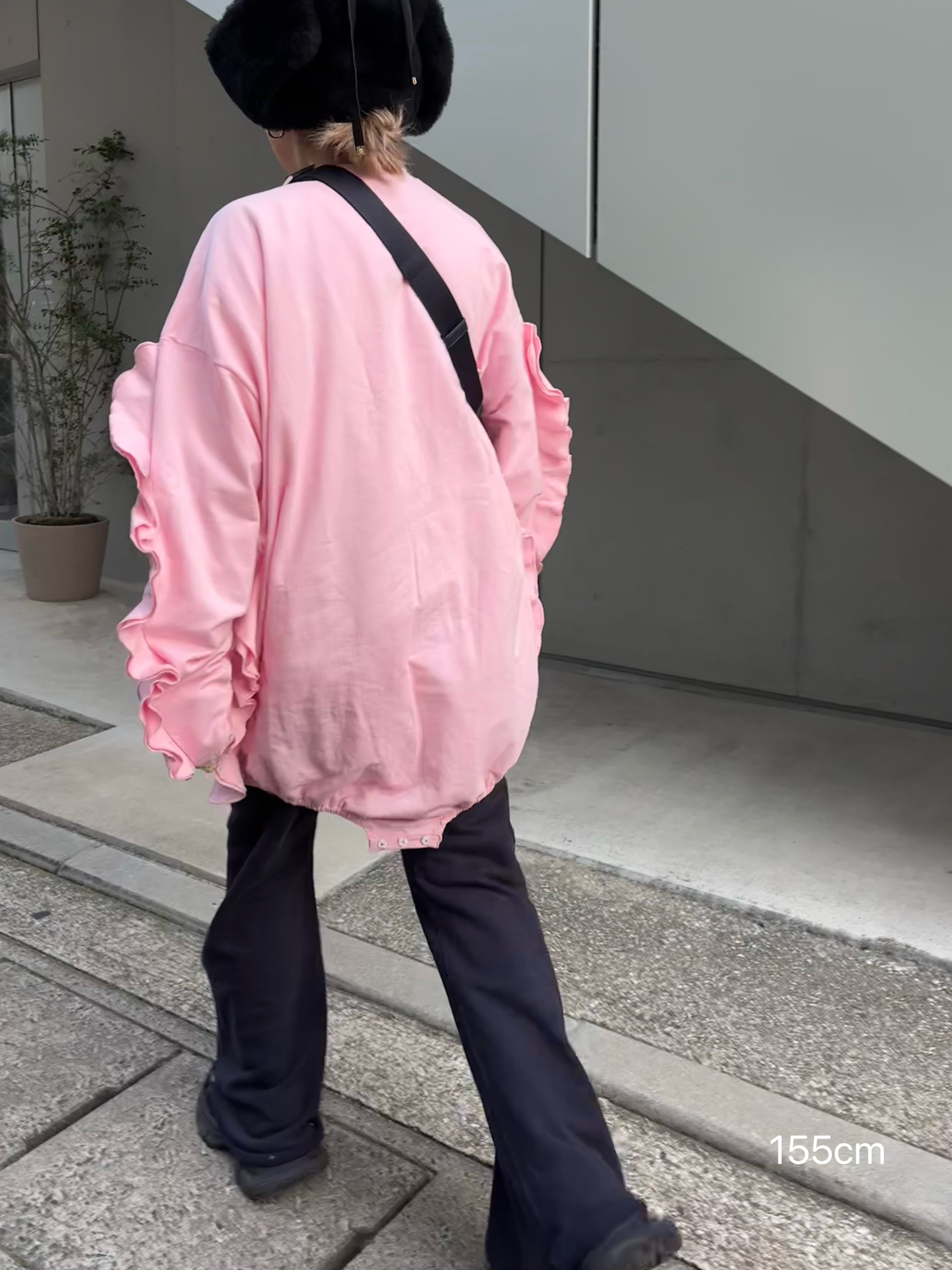 フリルデザインが女性らしい印象のオーバースウェット。