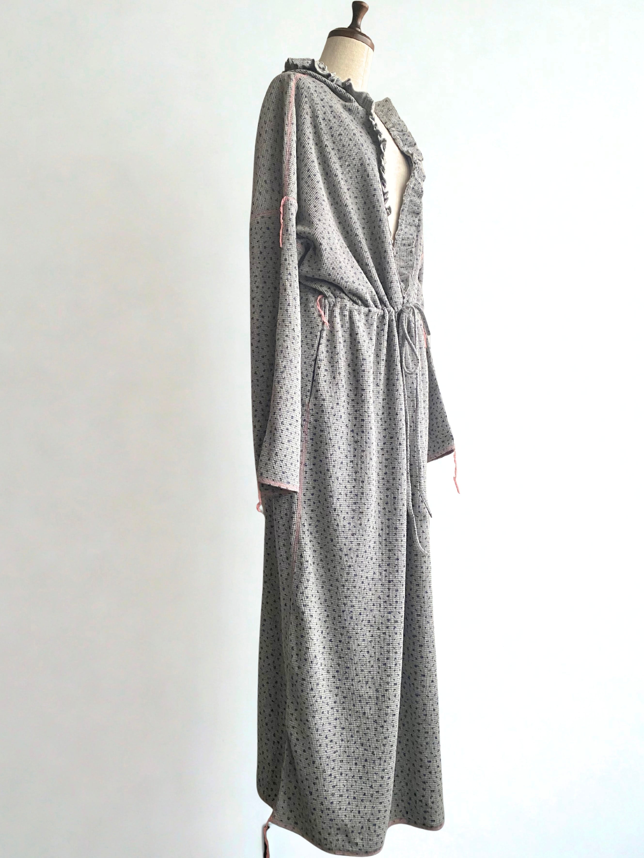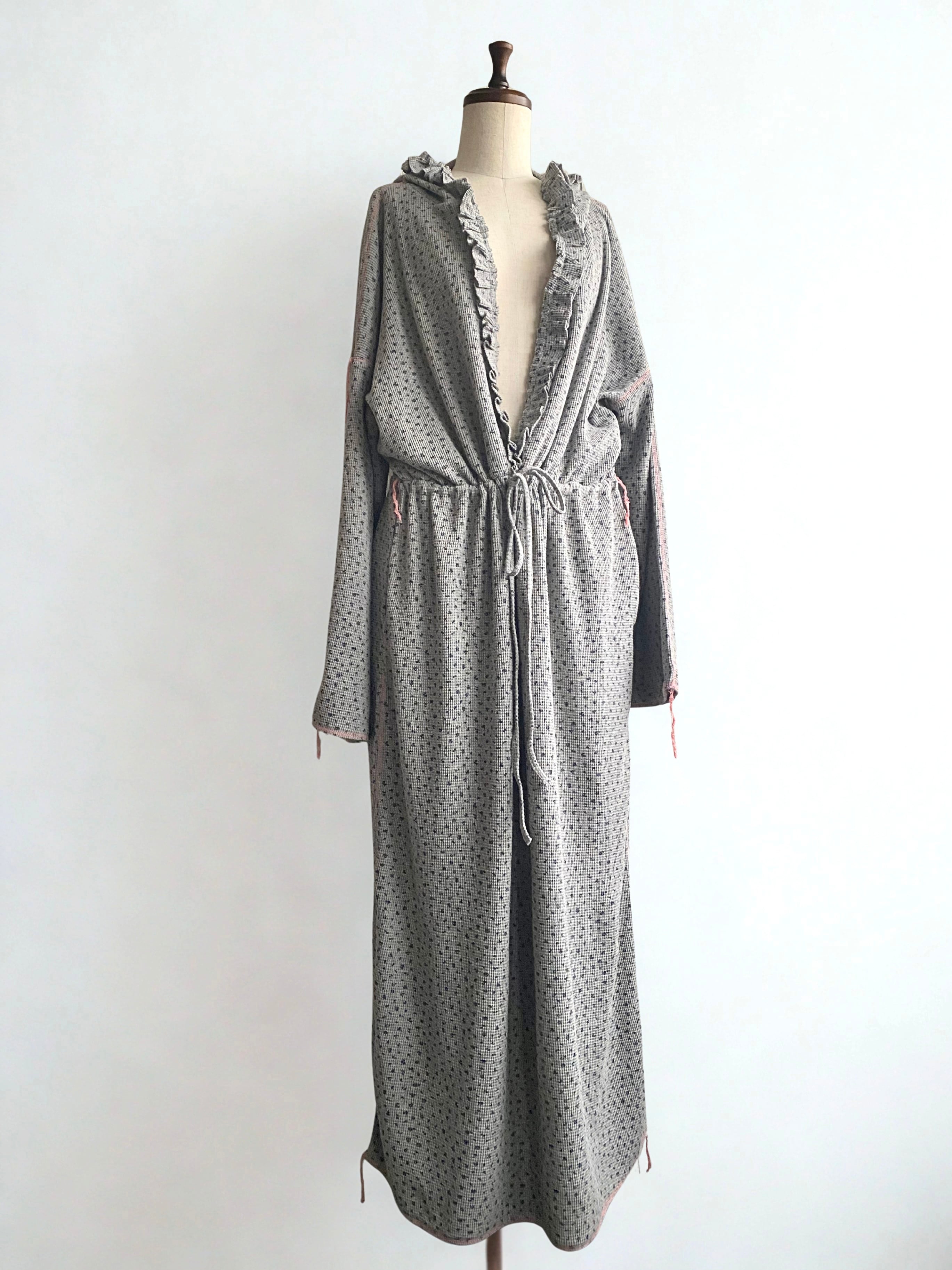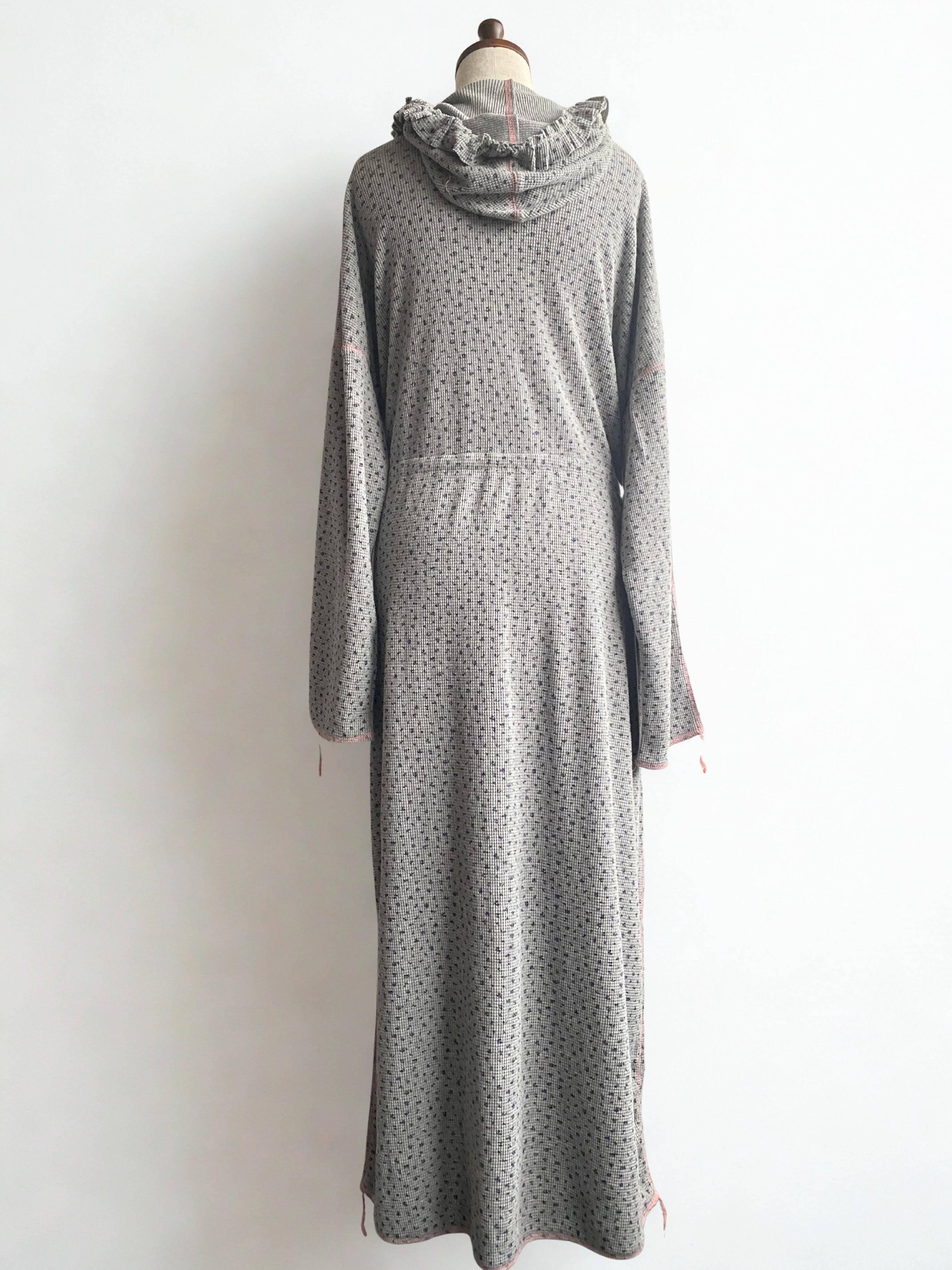 抽象的な柄とカラーステッチが特徴のロングワンピース。