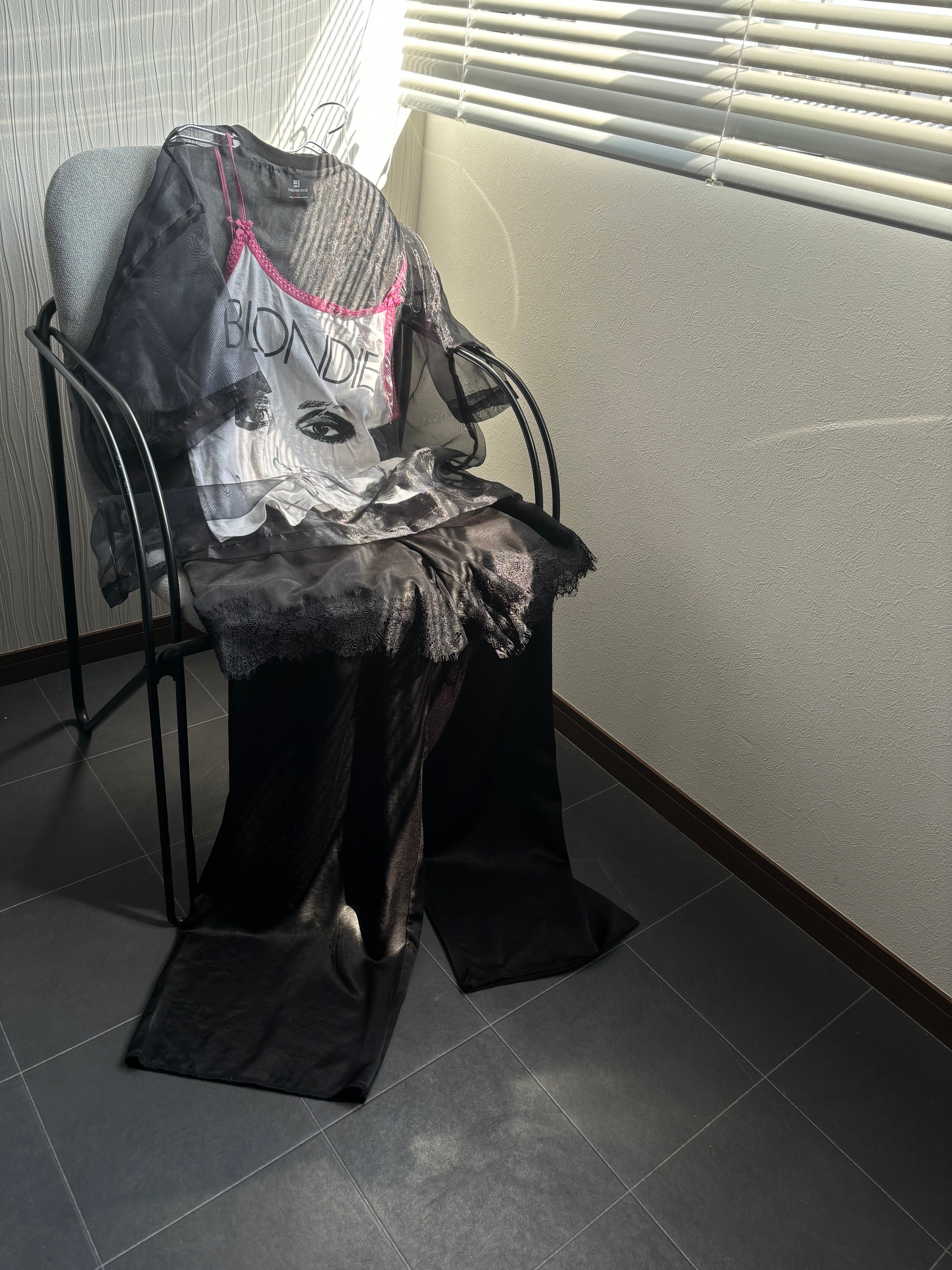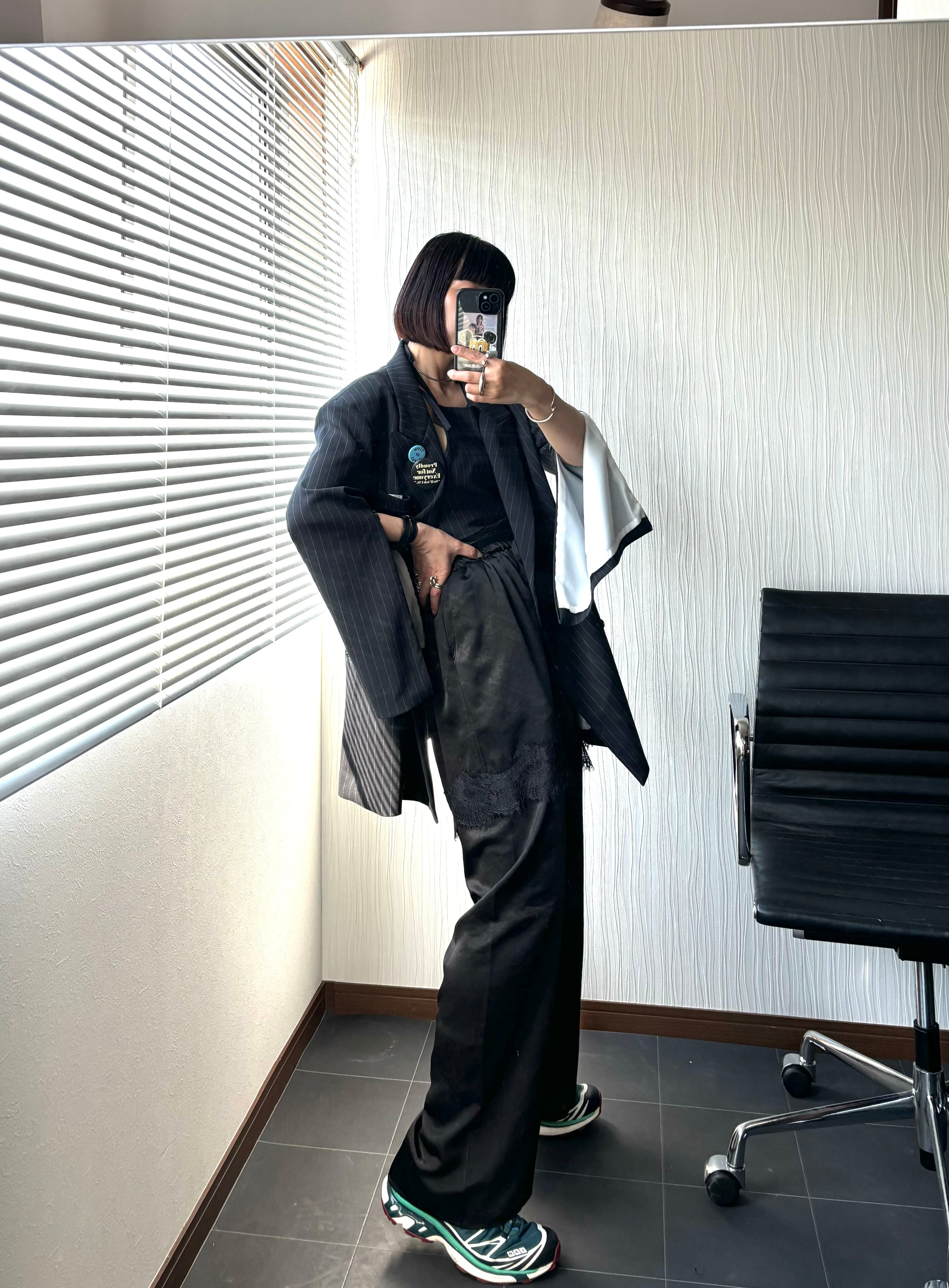 ちょうどいい厚みと光沢のあるレイヤードサテンパンツです。