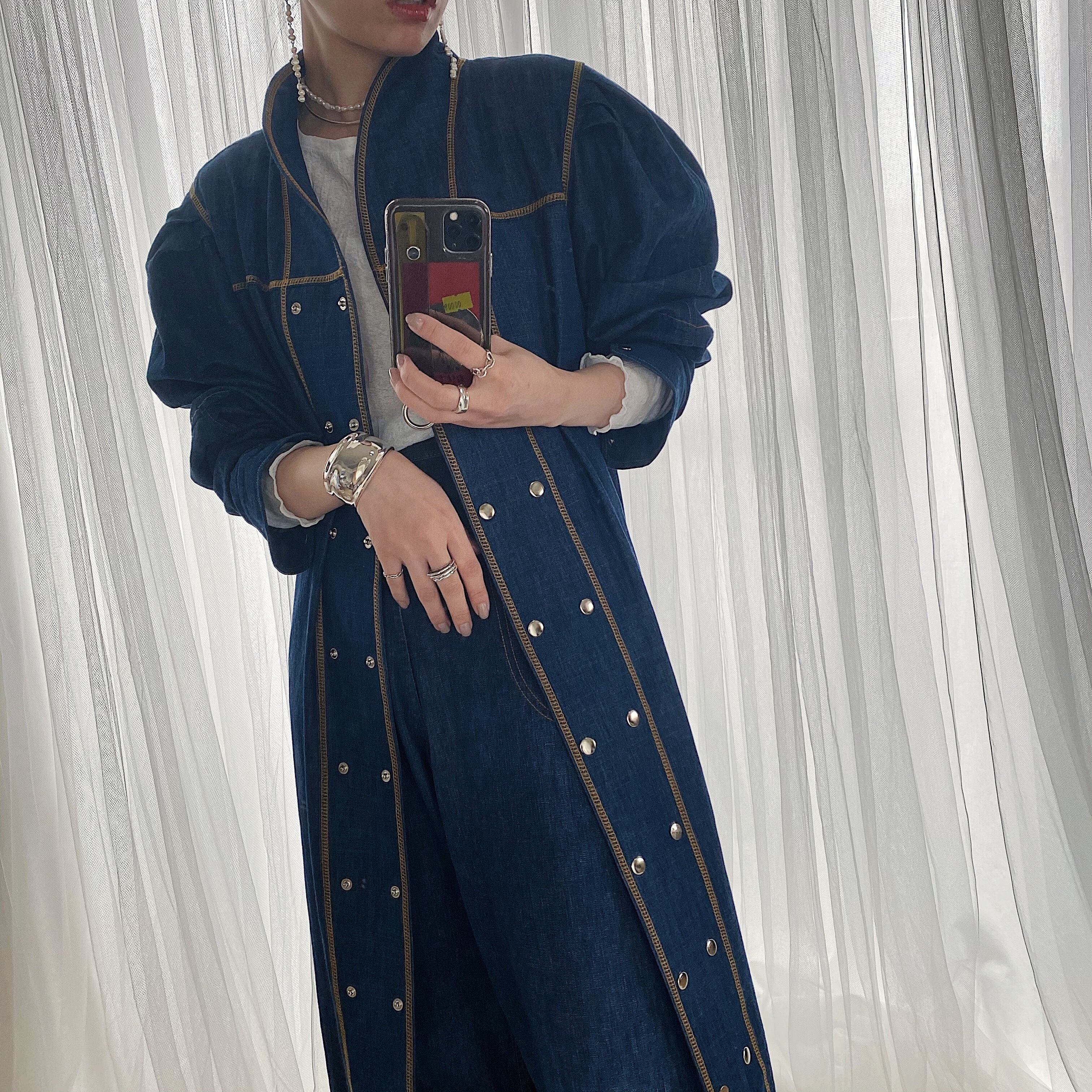 ※デニム生地ですので、雨の日や・ご自宅での洗濯洗い時に、他の生地に色移りする可能性がございます。十分ご注意くださいませ。